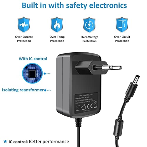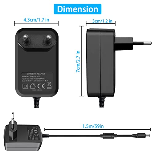 [Spécification:] Plage de tension d’entrée mondiale: 100-240V 50 / 60HZ; Sortie: 18V 1.67A, puissance 30W Max. Longueur du câble: environ 5.9ft.