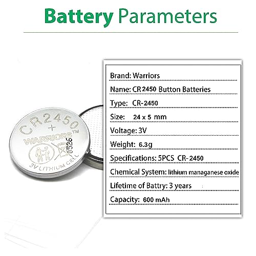 Warriors 5X Pile Piles 2450 CR2450 Bouton 3V,Emballage à l’épreuve des Enfants, pour appareils Smart Home, clés de Voiture