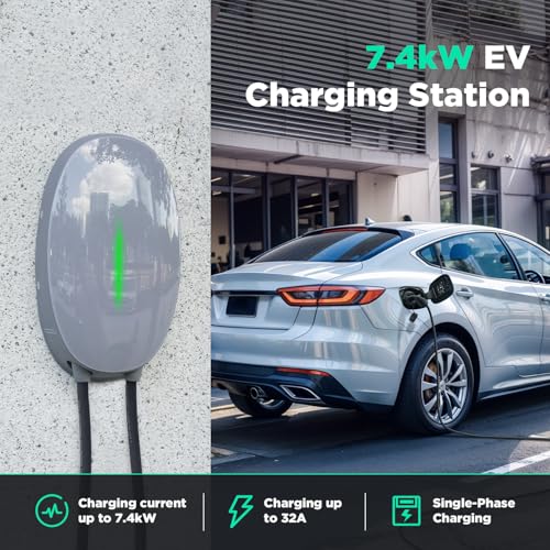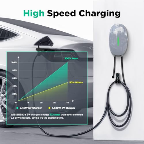 WISSENERGY Wallbox 7.4kW Type 2 pour véhicule électrique, Borne de Recharge Voiture électrique Intelligente avec Norme Européenne IEC 62196-2, Chargeur Monophasé avec Câble 32A 6M